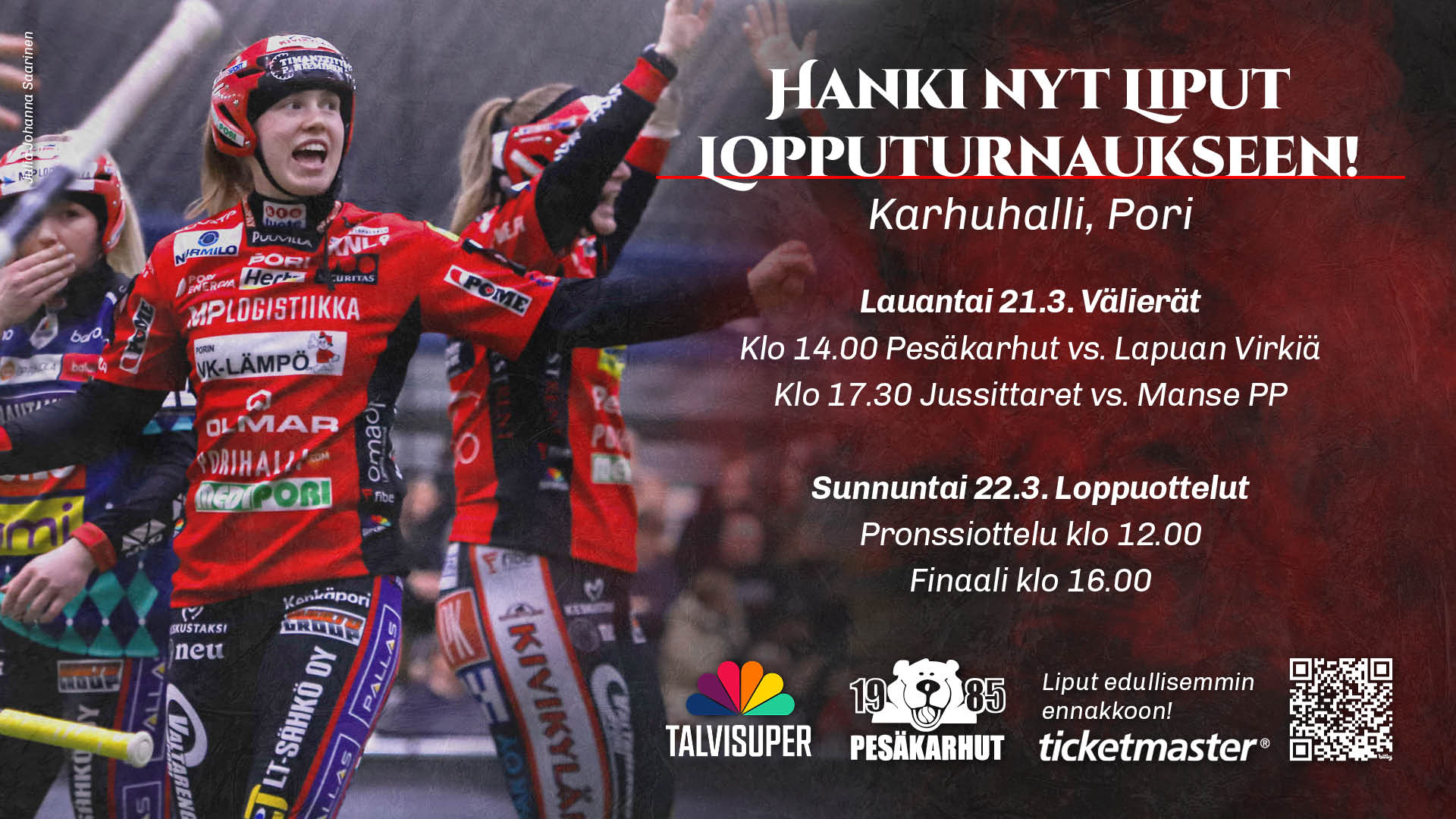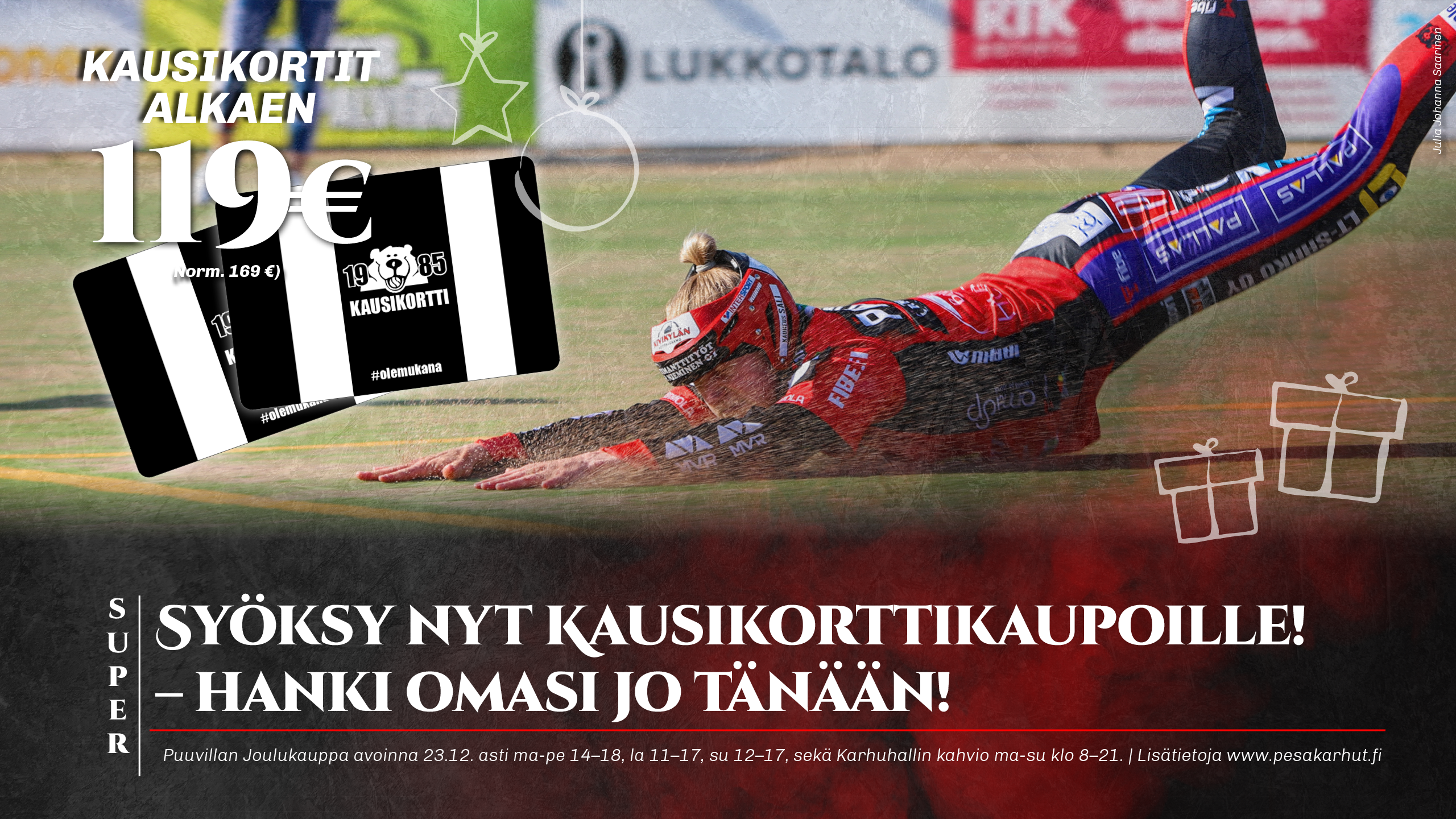 Edun saa oston yhteydessä Pesäkarhut-korttia näyttämällä. Edun saa kaikilla Pesäkarhujen korteilla: kausi-, valmentaja-, talkoolais- sekä juniorikortilla.