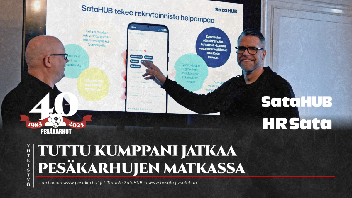 – SataHUBin avulla työhakemusten läpikäyminen oli kätevää ja ennen kaikkea säästi työaikaa, kun hakemuksia pystyi käsittelemään yhdessä paikassa eikä tarvinnut selata sähköpostia läpi. Myös hakijan kokemuksen ja osaamisen kartoittaminen käy kätevästi räätälöidyillä kysymyksillä. SataHUB on näppärä rekrytointijärjestelmä, jonka käyttö on todella helppoa, kertoo Pesäkarhujen junioripäällikkö Samuli Rajala.