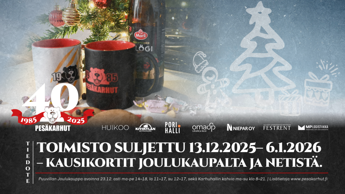Kausikorttitarjoukset ovat voimassa 31.12.2025 saakka. Kausikortit on mahdollista uusia myös netin kautta osoitteessa www.pesakarhut.fi/kausikortin-uusiminen.