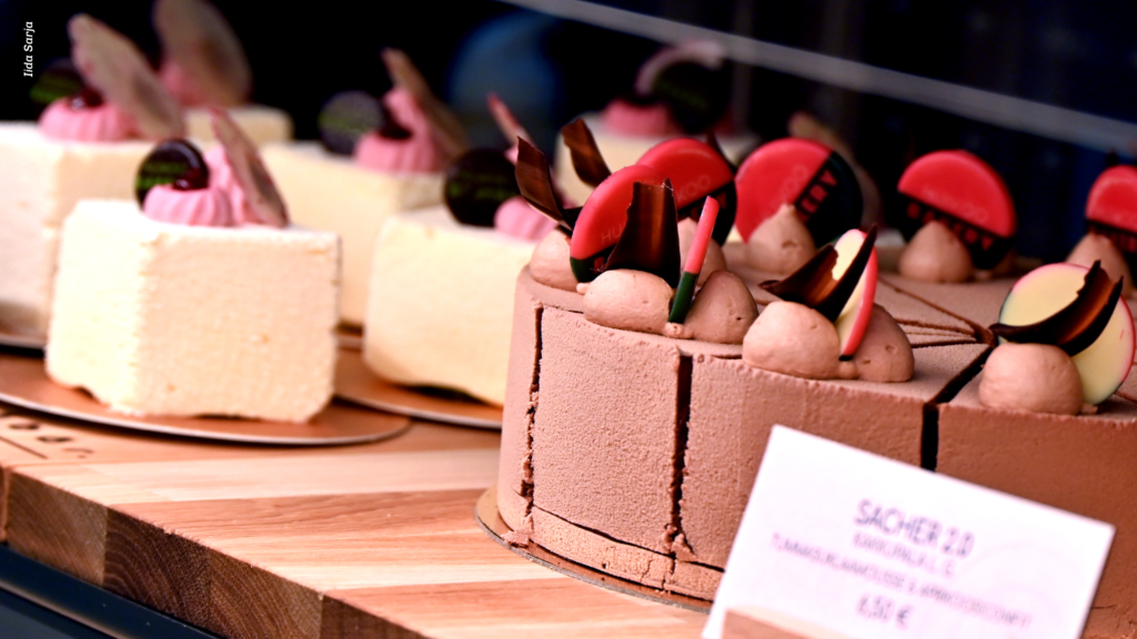 Ovien avautuessa maanantaina kello 11, vitriinin herkkuja ihastelemaan saapuivat Irmeli ja Toivo Aalto, jotka tulivat ensi kertaa tutustumaan Café Blåbärin tarjontaan Irmelin syntymäpäivän kunniaksi.